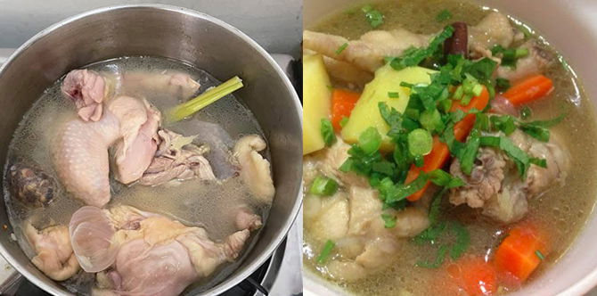 - Masak hingga mendidih dan sehingga ayam lembut.
