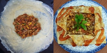 - Hidangan: Dihidangkan dalam bentuk gulung atau lipatan, kadangkala dengan sos di atas atau dihidangkan bersama nasi.