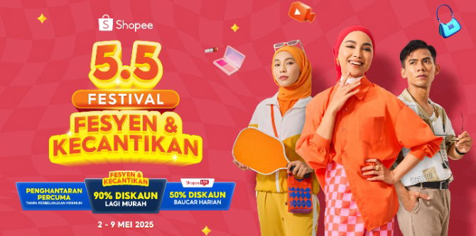 KUALA LUMPUR, 2 Mei 2025 – Inilah peluang terbaik untuk checkout barang-barang wishlist yang dah lama ‘terperap’ dalam troli anda sebab semuanya Lagi Murah di Shopee 5.5 Festival Fesyen & Kecantikan!