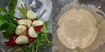 - Masukkan daun ketumbar. Kalau besar (1 pokok) kalau kecil (2 pokok) dan cili api. Boleh kurangkan kuantiti cili api jika tidak suka pedas.