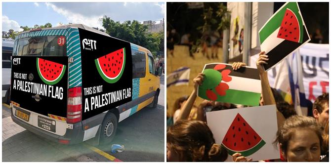 Lalu emoji atau gambar tembikai digunakan sebagai lambang bendera Palestin kerana apabila dipotong, isi buah tersebut kelihatan seperti warna bendera negara tersebut.