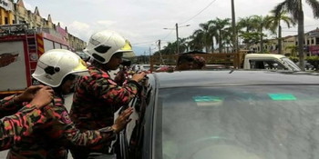 Anggota bomba mengambil masa lima minit untuk membuka kenderaan yang terkunci itu dan mangsa dipercayai sudah terperangkap kira-kira 10 minit dalam kereta berkenaan.