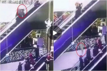Rakaman dari kamera sekuriti yang telah viral di atas talian menunjukkan wanita tersebut sedang menuruni eskelator dari tingkat empat sambil mendukung bayinya di tangan kanan.