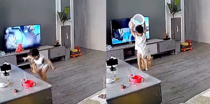 Sedangkan orang dewasa bila menonton drama di TV pun boleh emosi, apatah lagi anak kecil yang masih naif. Sebabkan emosi tonton TV, Bayi buat TV retak!
