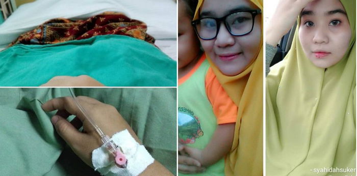 Satu hari setengah Nursyahidah ditahan di hospital untuk tambah air. Rupa-rupanya, usus beliau sudah bengkak!