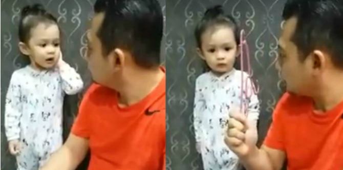 Video anak comel ini yang sedang dimarahi ayahnya kerana bermain dengan gunting telah viral sejak ia dimuat naik petang semalam.