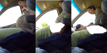 Sementara itu suaminya memandu dengan laju bagi membolehkan mereka sampai ke hospital. Melihat keadaan isteri yang ingin bersalin, dia turut membantu menyelak seluar dan membuka tali pinggang keledar.