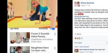 “Was watching Frozen Colouring Book with my child before leaving her for 5mins,” she says. “When I came back, she happened to just select on this video.”